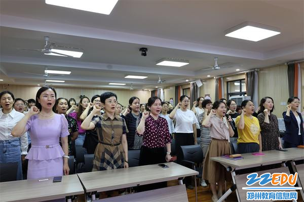 全体老师在张莉的带领下,再次重温教师誓词,不忘教育初心,牢记时代使命,做孩子们成长路上的引路人,用爱呵护每一个孩子健康成长。