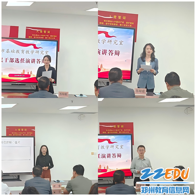 会议第一项内容是民主测评,郑州市基础教育教学研究室全体职工对8位教师进行评价。民主测评后进行中层干部选任演讲答辩,会议现场气氛紧张而热烈。参与竞聘的教师依次上台,围绕个人基本情况、任职目标、达到目标的措施等方面进行了精彩的演讲。他们思路清晰、言辞恳切,结合自身的工作经验和专业素养,展现出了对单位发展的高度责任感和强烈的担当意识。评委本着客观公正的态度,认真倾听每一位竞聘者的演讲,进行综合评分,全面考察竞聘者的综合素质。工作人员现场汇总成绩,由张五敏现场公布,确保选拔过程公平公正。