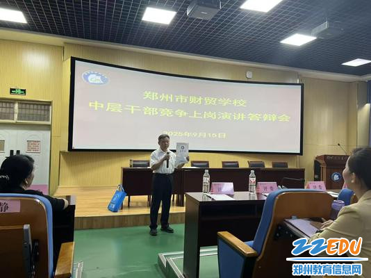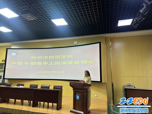 9月15日,郑州市财贸学校举行中层干部竞争上岗演讲答辩会。本次选拔依据好干部标准、德才兼备标准,坚守公开透明、公平公正、激励进取的选人用人原则,通过严谨细致的资格审查、广泛深入的民主测评以及精彩纷呈的演讲答辩等多个环节,全面、公正地开展人才竞选工作。