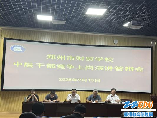 郑州市财贸学校通过此次中层干部竞争上岗答辩会,选择了一批信念坚定、善于学习、懂规守纪、创新能力强的干部充实到中层干部队伍中来。相信这支队伍必将成为学校发展征程中不可或缺的中坚力量,书写出更加辉煌灿烂的篇章。