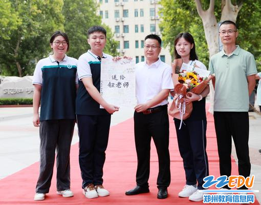 郑州市第十二中学教务处副主任钮亚军和学生一起过儿童节