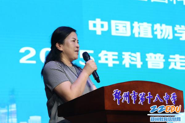 郑州市第十八中学党委书记段亚萍主持科普报告会