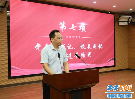 郑州市第十二中学党委副书记、校长周铭宣布选举结果