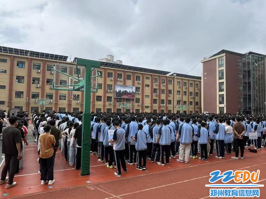 9月15日上午,郑州市科技工业学校全体师生齐聚操场,举行以“勿忘曾经烽烟起,心中长鸣警钟声”为主题的升旗仪式,仪式在雄壮的出旗曲中正式开始。国旗护卫队迈着整齐有力的步伐,护送国旗庄严入场。全体师生肃立行注目礼,在嘹亮的国歌声中,注视着五星红旗冉冉升起,猎猎飘扬于秋日晴空。随后,全校师生举起右手庄严宣誓:“忠于祖国,为祖国服务!”铿锵誓言响彻校园,展现了新时代青年学子的使命与担当。