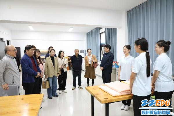 随后,交流团一行重点参观了学校的幼儿保育实训室。据悉,在2025年世界职业院校技能大赛总决赛争夺赛中,郑州艺术幼儿师范学校荣获两金一银的佳绩。这一卓越成果引发了海南同仁的高度关注和浓厚兴趣。一行人深入了解了该校幼儿保育专业建设情况,对学校高规格、高标准的实训条件表示赞叹,并对学校将大赛标准有效反哺日常教学的“岗课赛证”综合育人实践给予了充分肯定。