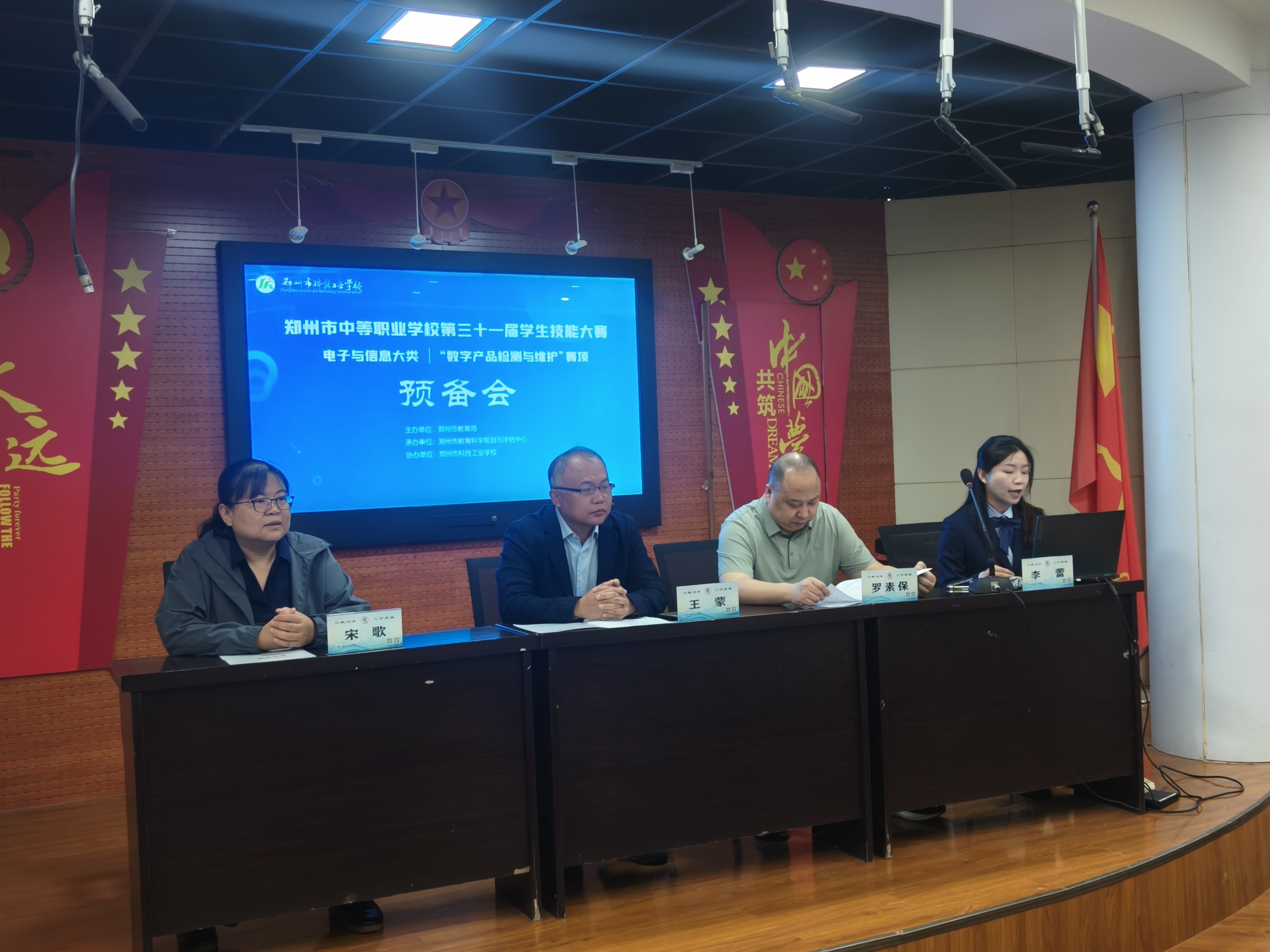 在郑州市科技工业学校举办,图为召开赛前预备会。