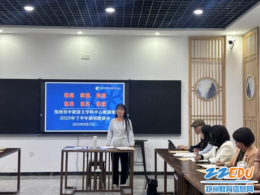9月25日下午,2025年下半年郑州市中等职业学校语文学科中心教研组教研会在郑州市财贸学校召开,会议由郑州市教育科学规划与评估中心职业教育教学研究室语文教研员张琳主持,中心教研组全体成员和郑州市各职业学校语文学科教研组长参加会议。