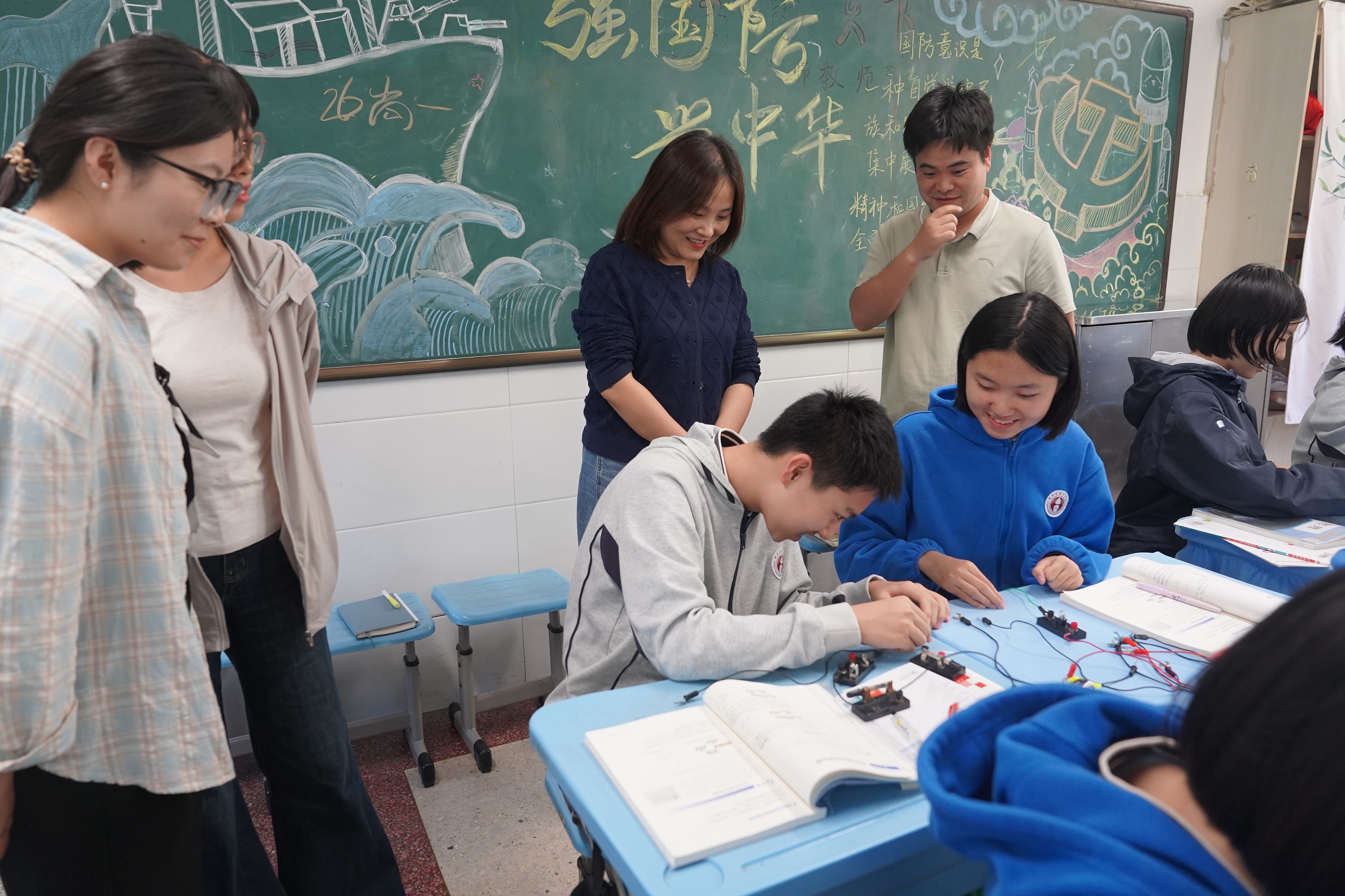 项目组首先深入课堂一线,观摩了语文和物理两门学科的现场教学。在物理课上,雷飞老师注重学生动手实践能力的培养;语文课上,杨梦源老师通过精心设计情境问题,有效组织学生开展讨论。生生互动、师生交流中闪烁着深度思考的光芒,充分体现了郑州市第八中学“育根课堂”的建设成果。