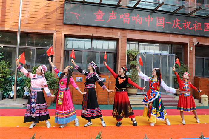 郑州市教工幼儿园老师身着少数民族服饰,师生齐唱《爱我中华》