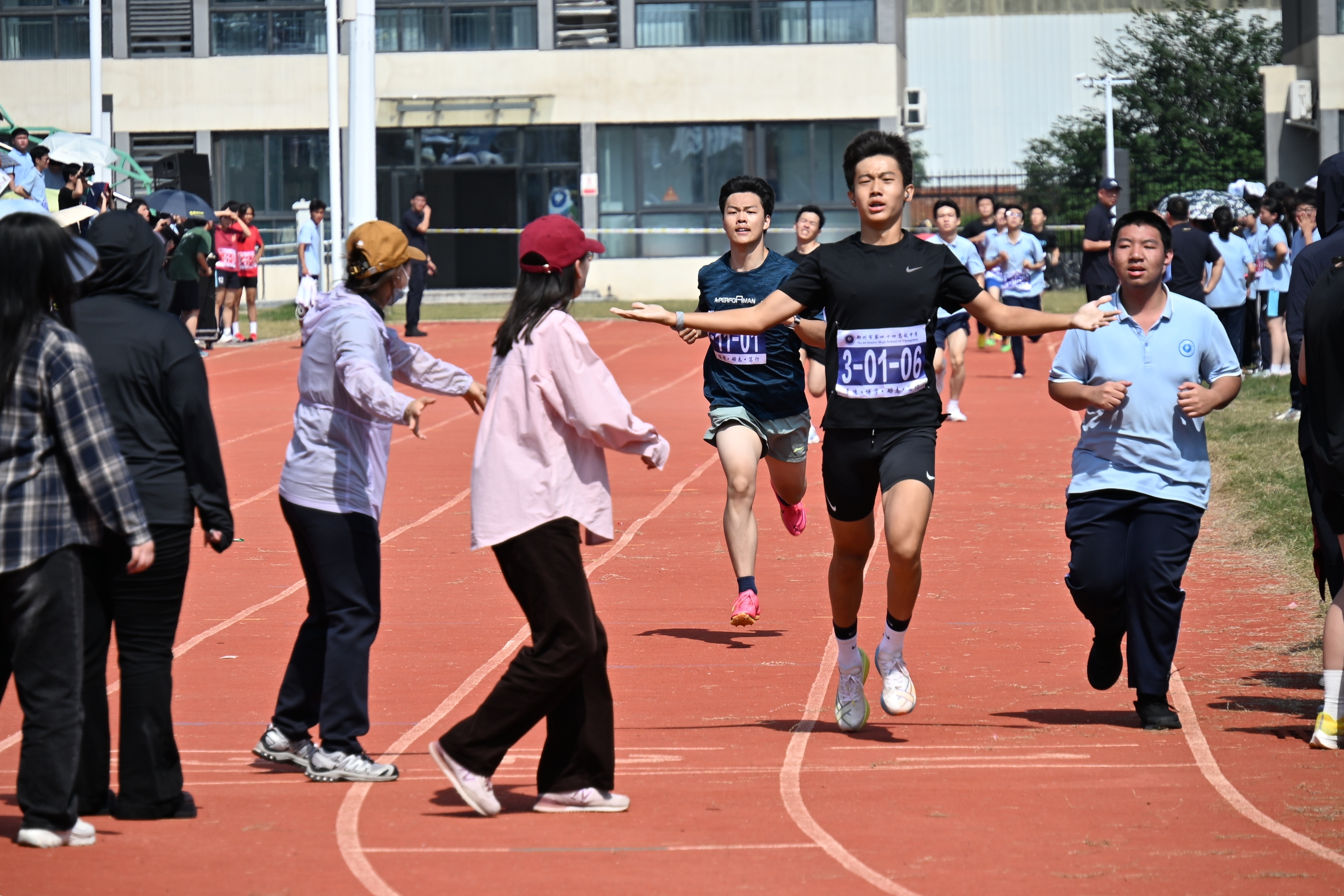 当然,运动会的顺利进行离不开背后默默付出的专业裁判员教师们,镜头此时也转向了他们。在运动会开始前,他们精心研究各项比赛规则,为公正裁决做足了准备。赛场上,他们始终专注,以严谨态度护航赛事。他们用专业维护公平,既尊重体育精神,更潜移默化向学生们传递出了诚实守信的道德准则。