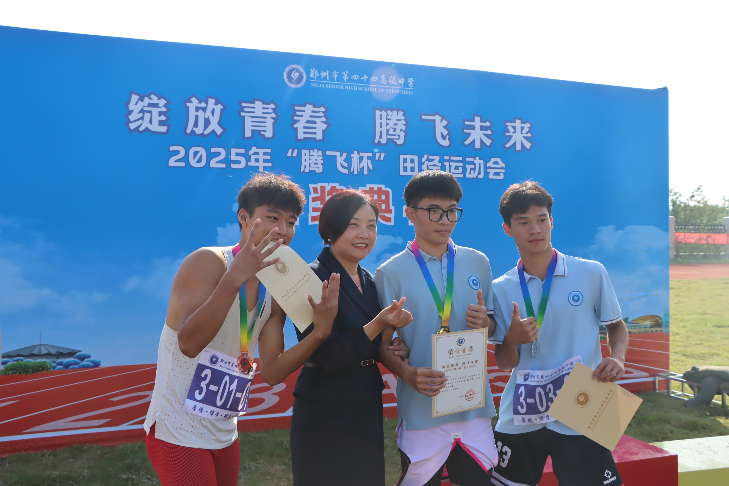 从精彩纷呈的比赛项目,到奋力拼搏的运动员;从热情似火的观众,到默默付出的裁判员;从井然有序的后勤保障,到别具匠心的宣传团队……在郑州市第四十四高级中学的校园里,这场运动会留下了青春的足迹、团结的力量与拼搏的精神。它不仅是一场体育的盛会,更是学校“五育并举”,推动德智体美劳全面发展的生动实践。全体师生将带着这份积极风貌,以更坚定的信念、更饱满的热情继续奋进,携手共创灿烂明天。