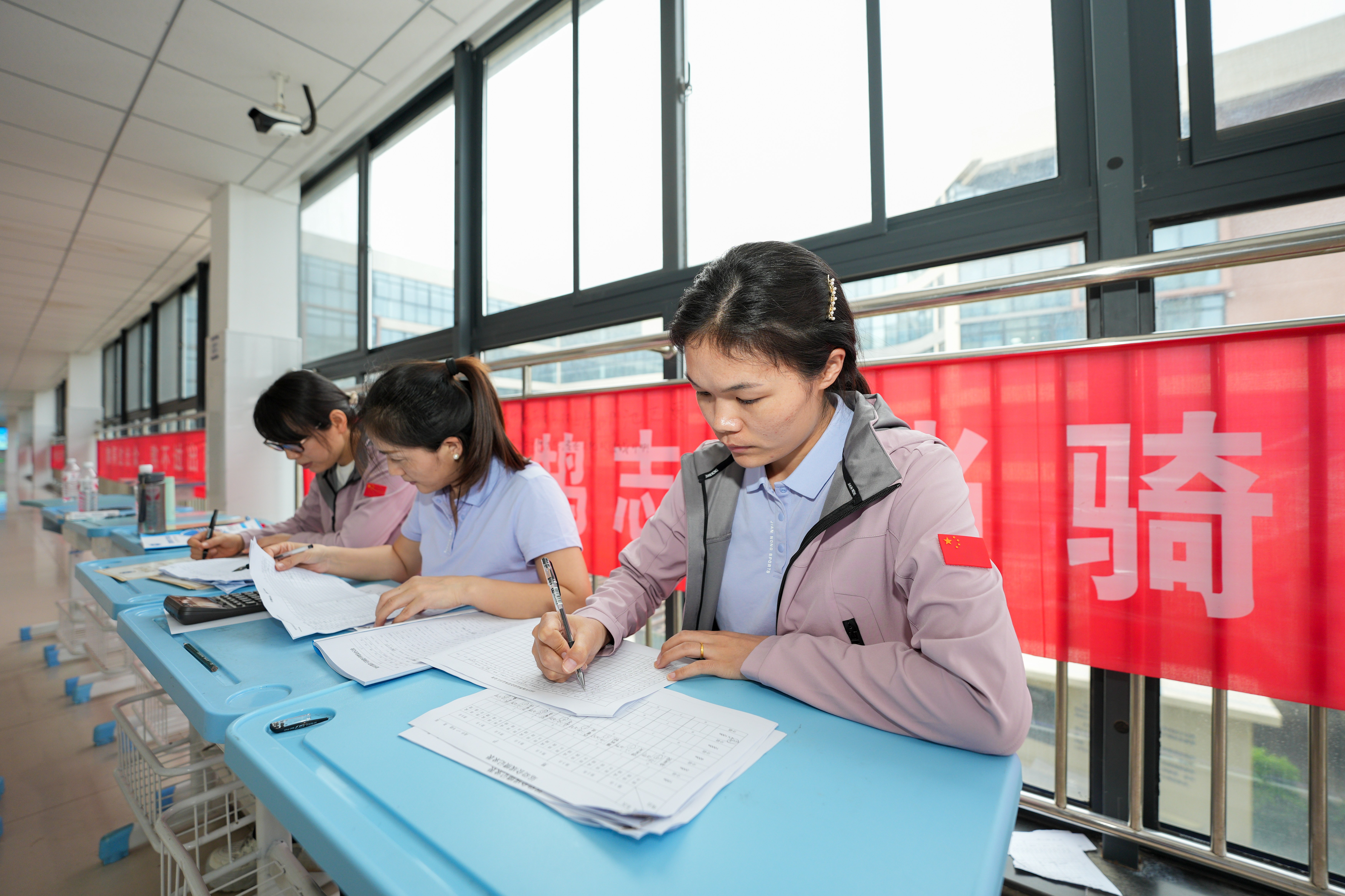 工作人员对比赛成绩进行核算
