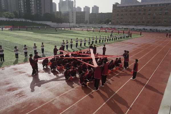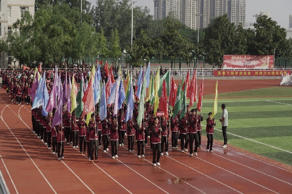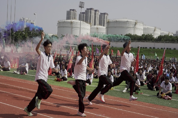入场式结束后,全场肃立,奏唱中华人民共和国国歌。雄壮的旋律回荡在运动场上空,激发了师生们的爱国情怀与奋斗激情。