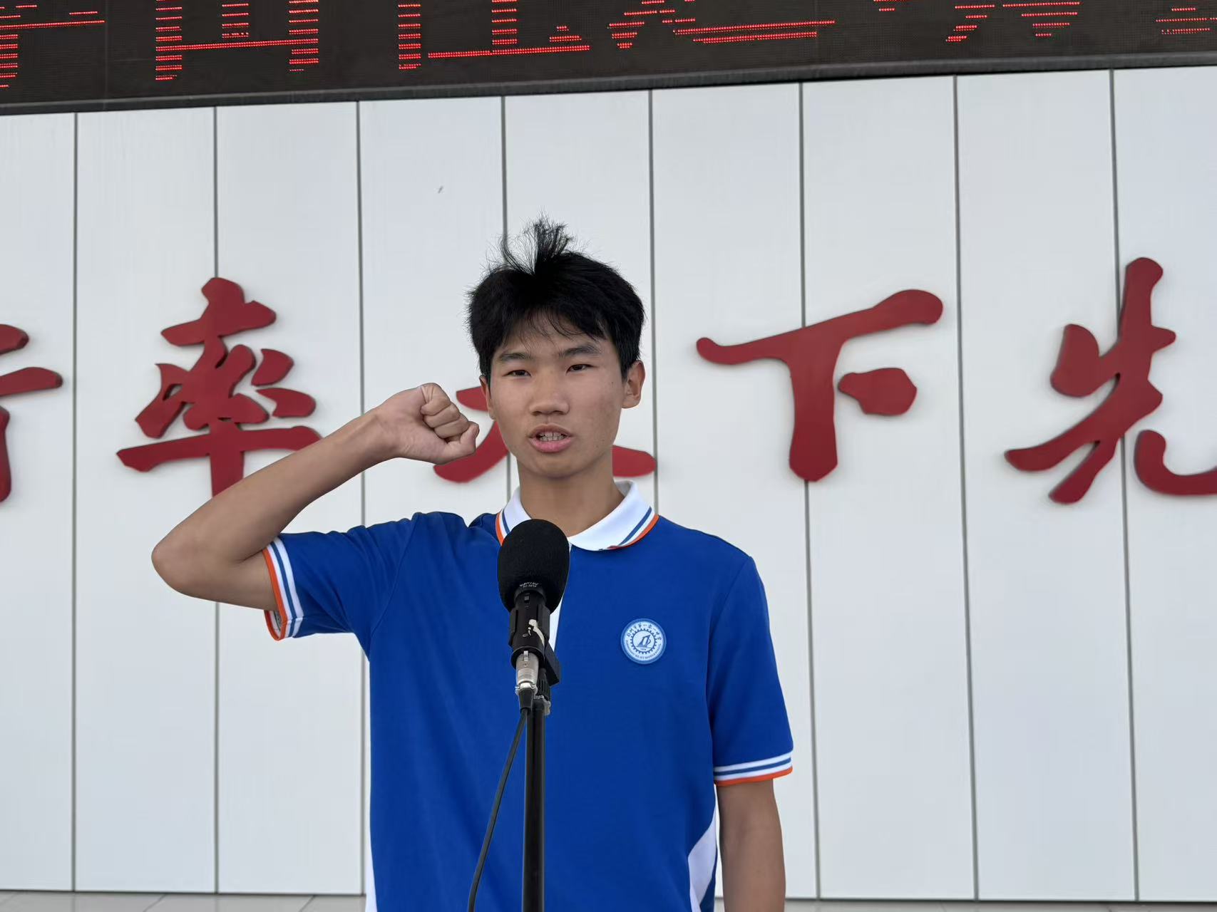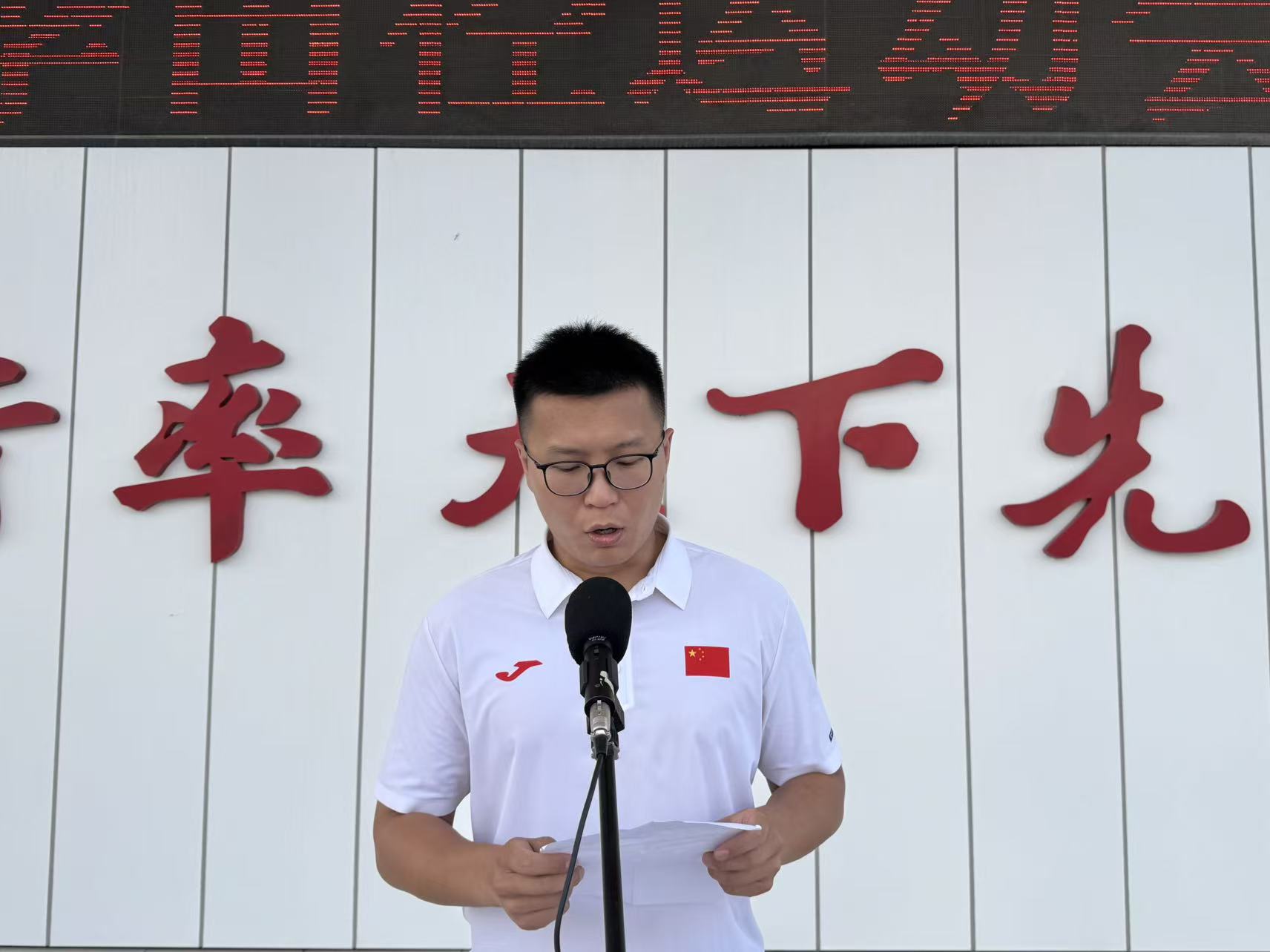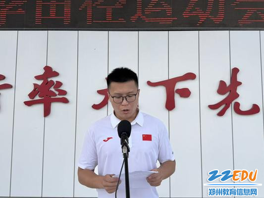 各方阵入场环节结束后,学校党委书记李国喜发表开幕式致辞。他强调,体育不仅是力量的角逐,更是精神的传承,希望全体运动员秉持“友谊第一,比赛第二”的原则,在赛场上挥洒汗水、超越自我,充分展现新时代少年的强健体魄与坚定意志;同时寄语全体师生以本次运动会为契机,养成热爱运动、崇尚健康的良好生活习惯,让体育精神深深融入校园生活的每一个角落。