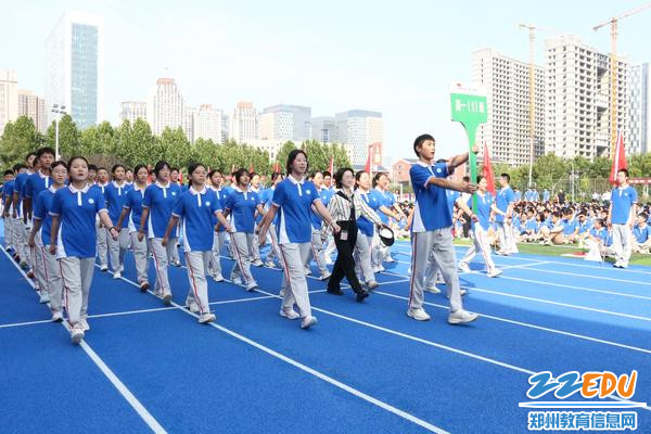 伴随着激昂雄壮的《运动员进行曲》,开幕式正式拉开帷幕。校旗护卫队迈着铿锵有力的步伐率先入场;随后,会徽展示队、红旗方阵、裁判员队伍及各班级特色方阵依次登场。嘹亮的呐喊口号、整齐划一的步伐,充分展现出郑州市第一〇一中学学子积极向上、奋勇拼搏的精神风貌。