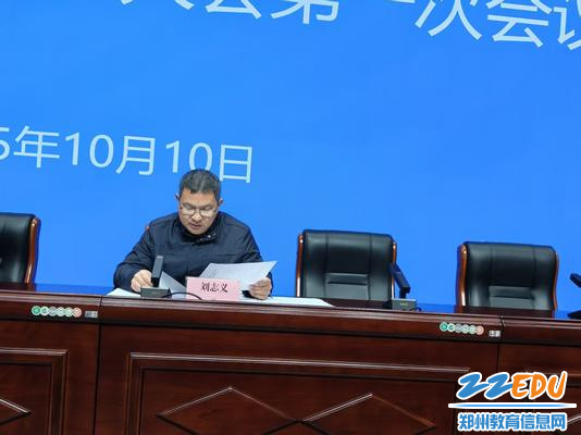 郑州市第一〇七高级中学副校长刘志义宣读决议