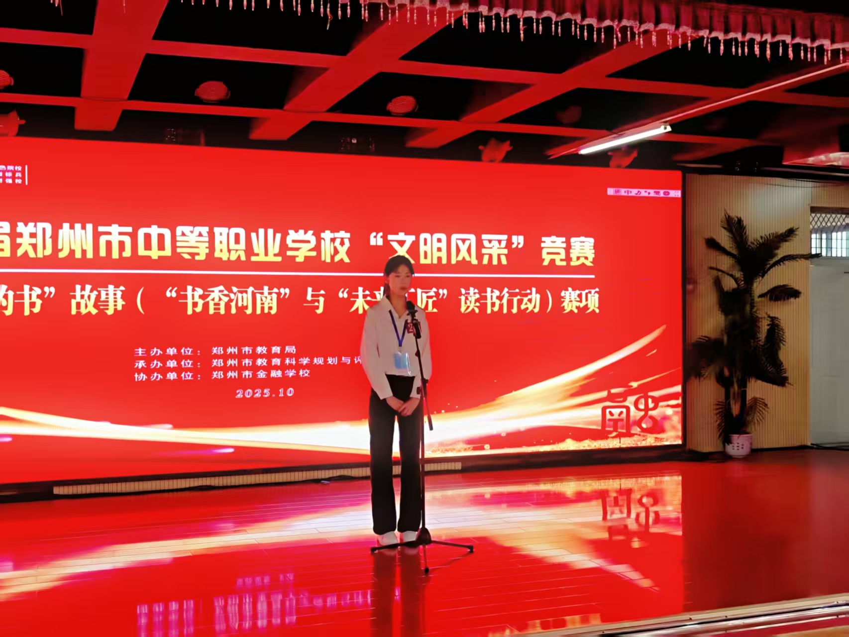 10月11日,由郑州市教育局主办、郑州市教育科学规划与评估中心承办、郑州市金融学校协办的第十九届郑州市中等职业学校“文明风采”竞赛模拟法庭与“我最喜欢的书”故事赛项圆满落幕。来自全市各中职学校的参赛队伍齐聚一堂,在法治与书香的碰撞中展现青春风采,在思辨与分享中传递成长力量。