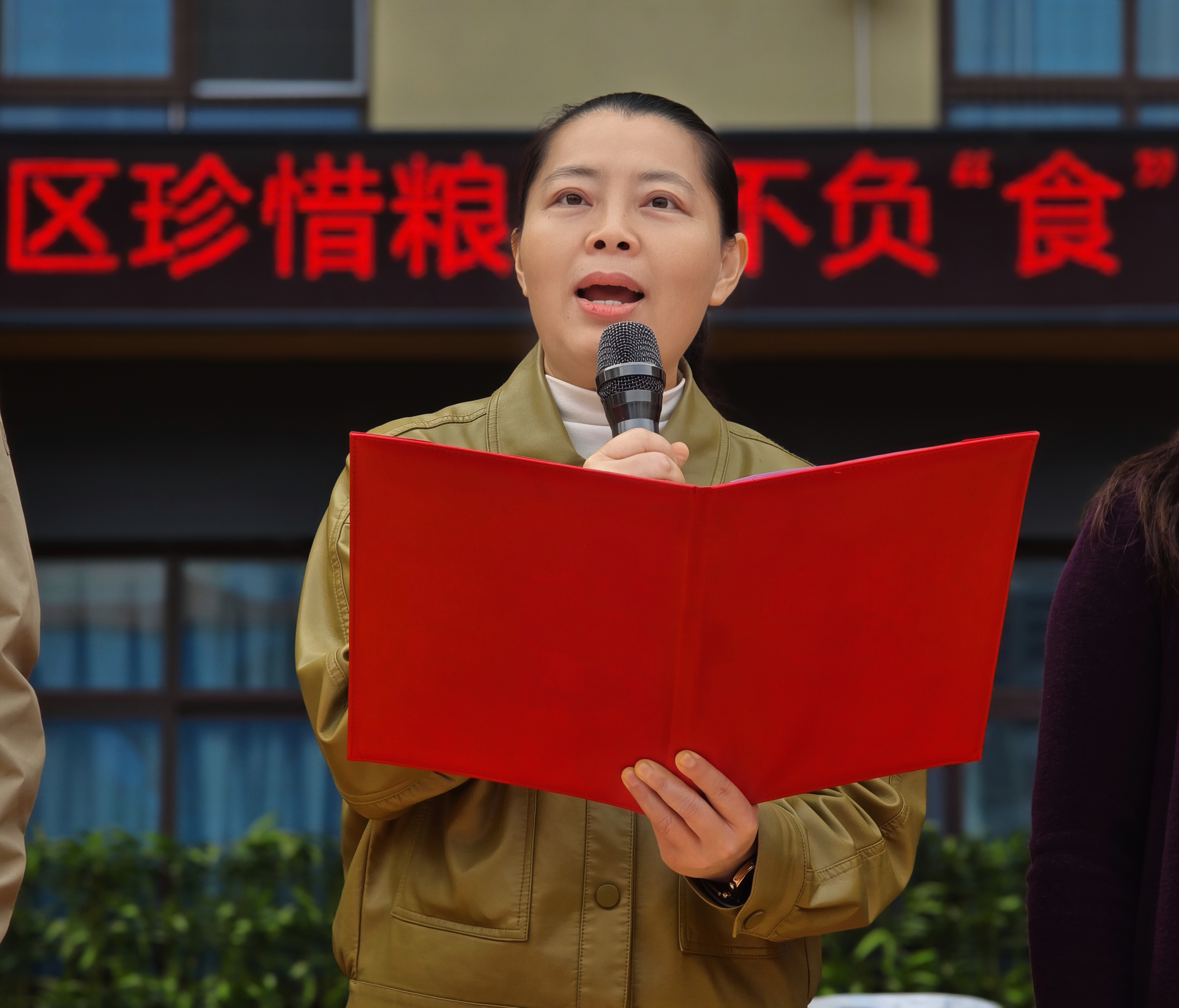 为了强化师生节约粮食的意识,数学组朱润格老师为大家分享了相关数据。据有关机构估算,每年损失浪费的食物超过22.7%,约9200亿斤,若能挽回一半的损失,就够1.9亿人吃一年。她分享道:“当我们按需取餐、光盘离席时,我们守护的不仅是一份食物,更是国家粮食安全的防线;当我们拒绝浪费、珍惜每一粒粮时,我们践行的正是‘小我’融入‘大我’的担当与格局。”