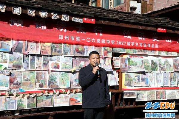 为检验写生成果,展示学生风采,促进学习交流,郑州市第一〇六高级中学于石板岩写生基地举办学生写生优秀作品展。10月13日,学校党委书记李明德到石板岩写生基地参加以“撷锦绣太行,绘醉美山川”为主题的优秀画展开幕式,并为获奖学生颁发奖项。