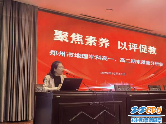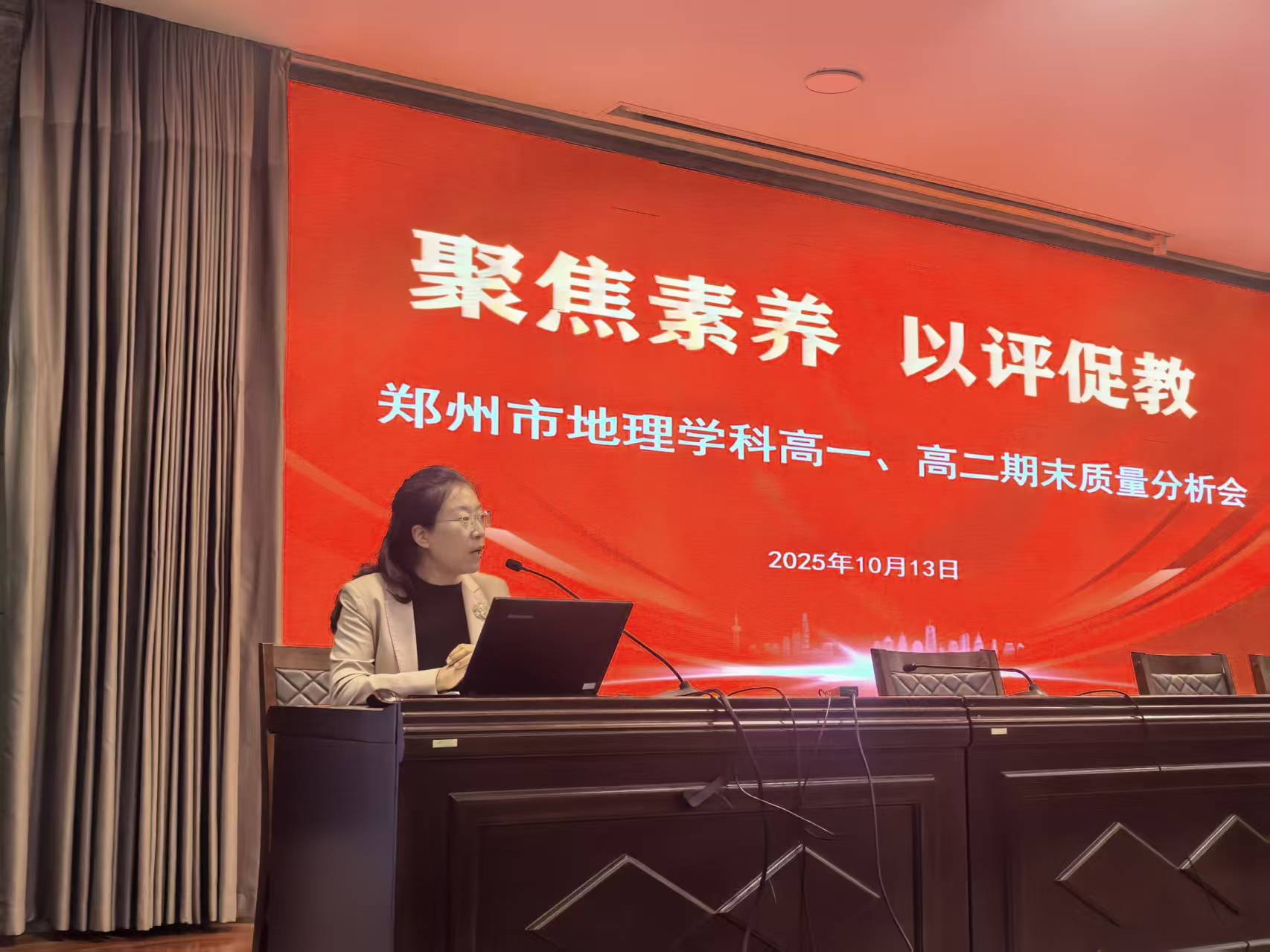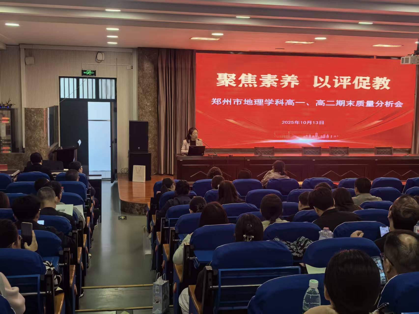 2025年10月13日,郑州市地理学科高一、高二年级期末质量分析会在郑州市第三十一高级中学地理学科基地举行。会议由郑州市基础教育教学研究室地理学科兼职教研员杨青华主持,郑州市基础教育教学教研室地理学科教研员赵丽霞、郑州各学校地理学科教研组长和备课组长参加会议。