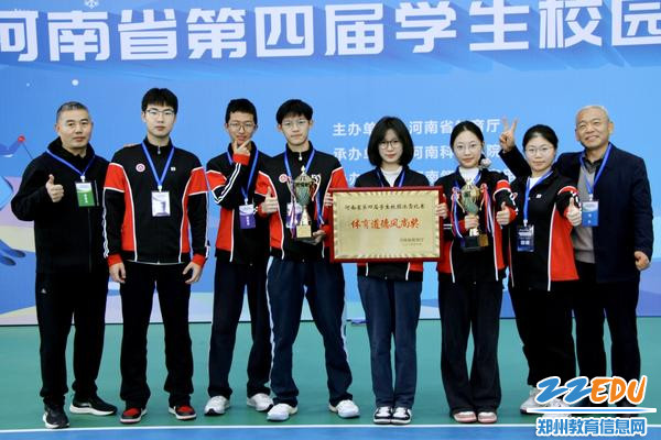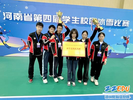 郑州市第五高级中学冰壶队领取亚军奖杯和体育道德风尚奖