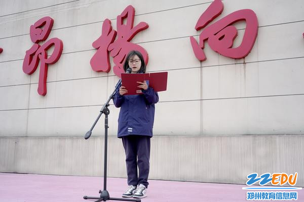 郑州市第五高级中学冰壶队员代表张梓雯在升旗仪式上分享比赛收获