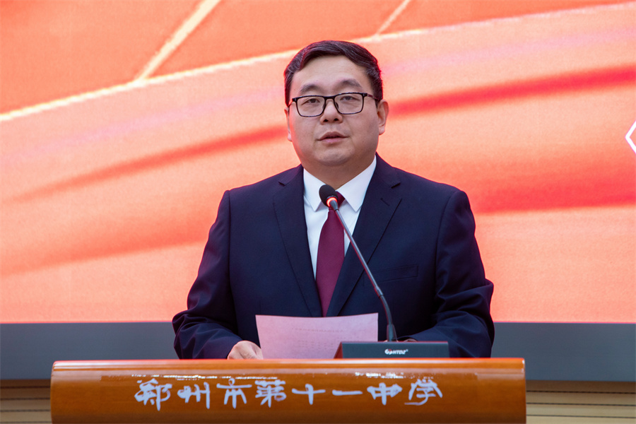 郑州市第十一中学校长张莹发表讲话,她向新当选的工会委员表示热烈祝贺,并对上一届工会委员会的辛勤付出表示衷心感谢。她谈道,过去几年工会充分发挥桥梁纽带作用,在服务教职工、促进学校民主管理方面取得了显著成效。张莹对新一届工会委员会提出三点期望:坚守“服务初心”,做教职工的“贴心人”;聚焦“中心工作”,做学校发展的“助推器”;强化“民主意识”,做学校管理的“监督员”。希望新一届工会勇担重任,让工会力量成为学校高质量发展的重要支撑。