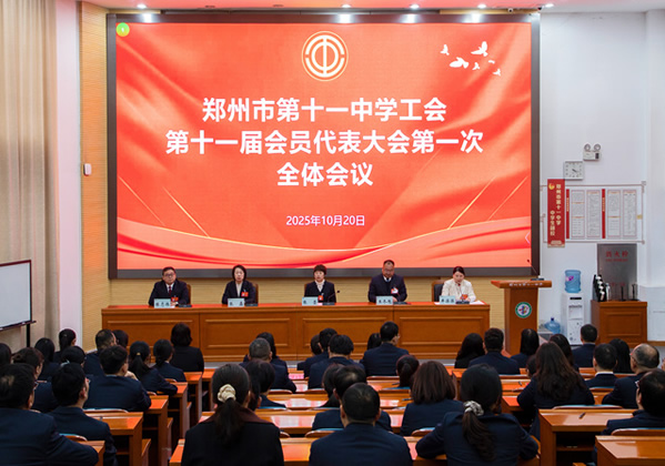 10月20日,郑州市第十一中学工会第十一届会员代表大会第一次全体会议在春华楼报告厅召开。会议由学校纪委书记井源源主持,工会会员代表及列席代表齐聚一堂,共商工会发展大计。