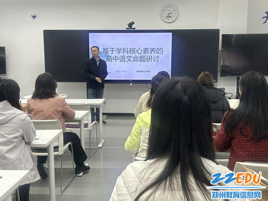 为提高试题命制的科学性,促进教师专业发展,10月20日下午,郑州市基础教育教学研究室语文教研员余昆仑应邀到郑州市第十八中学开展基于学科核心素养的高中语文命题研讨活动,并对学校语文教研组老师的原创试题进行指导点评,并做命题培训。