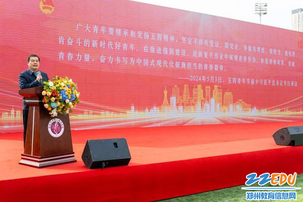 大会在庄严肃穆的国歌声中拉开帷幕。郑州艺术幼儿师范学校党委副书记、校长马进伟领学了习近平总书记对青年的寄语。学校党委书记周卫红深情寄语学子,要怀勇毅之心、立鸿鹄之志、行奋斗之举,将个人成长融入郑州发展脉络与民族复兴征程,用青春汗水书写精彩人生。共青团郑州市委相关负责同志勉励同学们以坚定信念、过硬本领、担当姿态展现青春作为,奋力书写为中国式现代化挺膺担当的青春篇章。