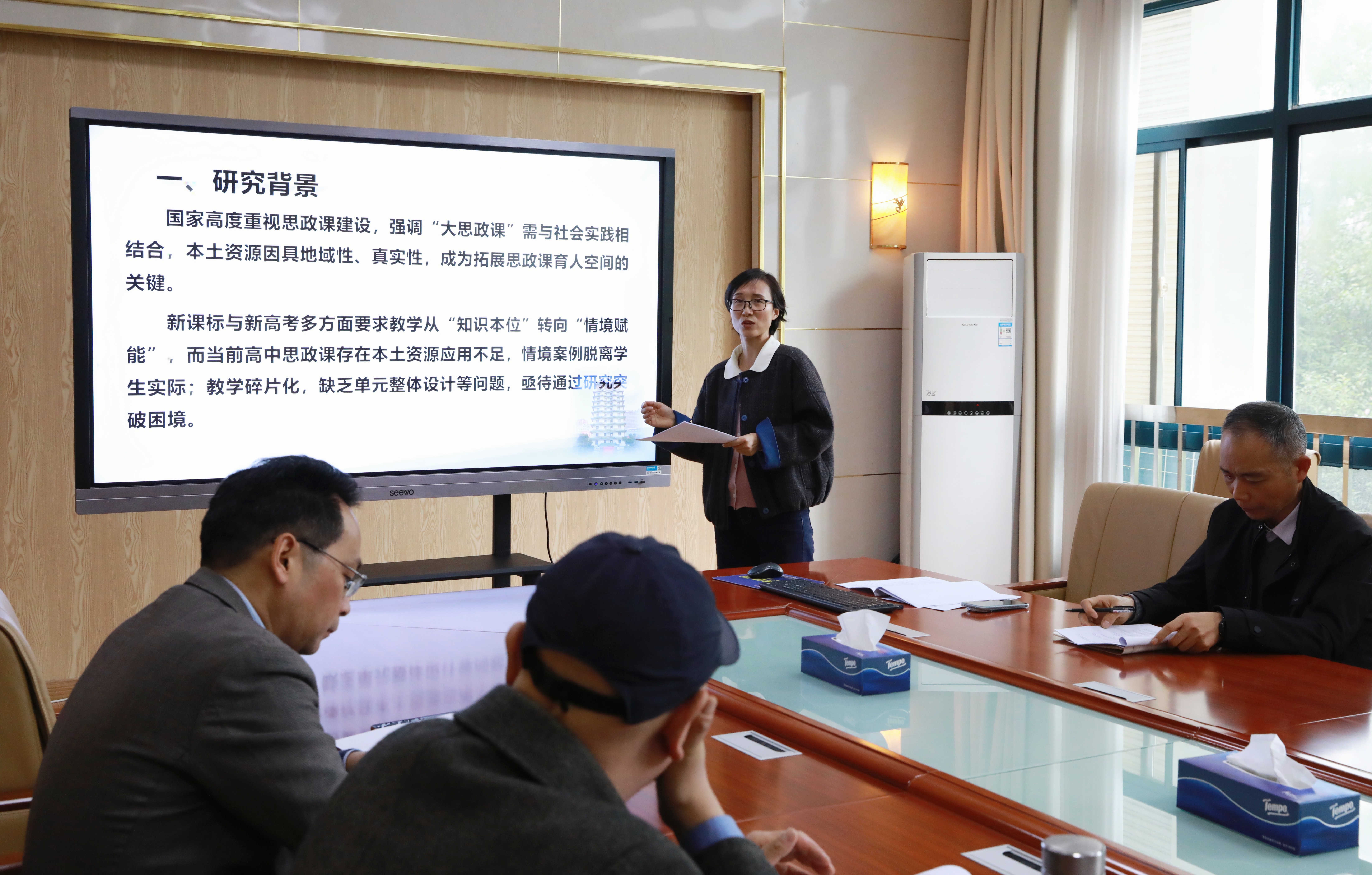最后,作为课题主持人,周铭总结并表态。他强调:“该课题立项是学校思政教科研的重大突破,学校将全力给予保障,确保研究按省级标准推进。期待课题组以‘深耕细作’的态度,把研究成果转化为课堂实效,不仅为提升学校思政课育人质量贡献力量,更能为全省基础教育阶段思政课课题研究提供可借鉴的实践经验。”