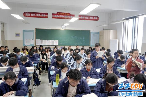 郑州市第五高级中学党委书记陈峻、副校长焦雪花听课
