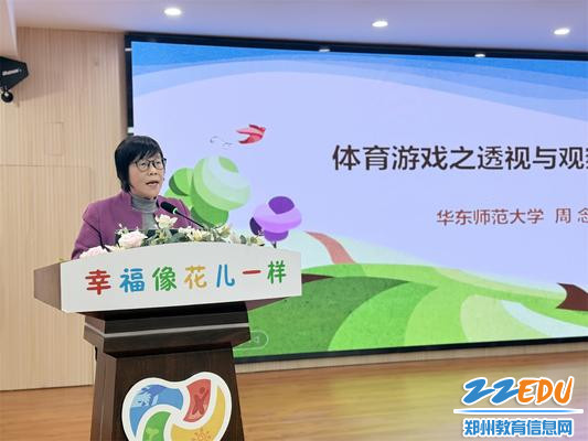 10月29日,郑州市实验幼儿园内生机盎然,一场聚焦幼儿体能发展的深度教研活动热烈开启。继首场装扮游戏研讨获得良好反响后,华东师范大学教授周念丽再次受邀莅临,开启为期两天的聚焦于“幼儿园体育游戏”的专题培训,为教师们的专业成长注入新的动能。