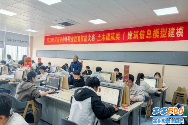 10月31日,由河南省教育厅主办,河南省教育科学规划与评估院承办,郑州市教育局、郑州市教育科学规划与评估中心、郑州市商贸管理学校协办的2025年河南省中等职业教育技能大赛全员化项目——建筑信息模型建模比赛在郑州市商贸管理学校举行。