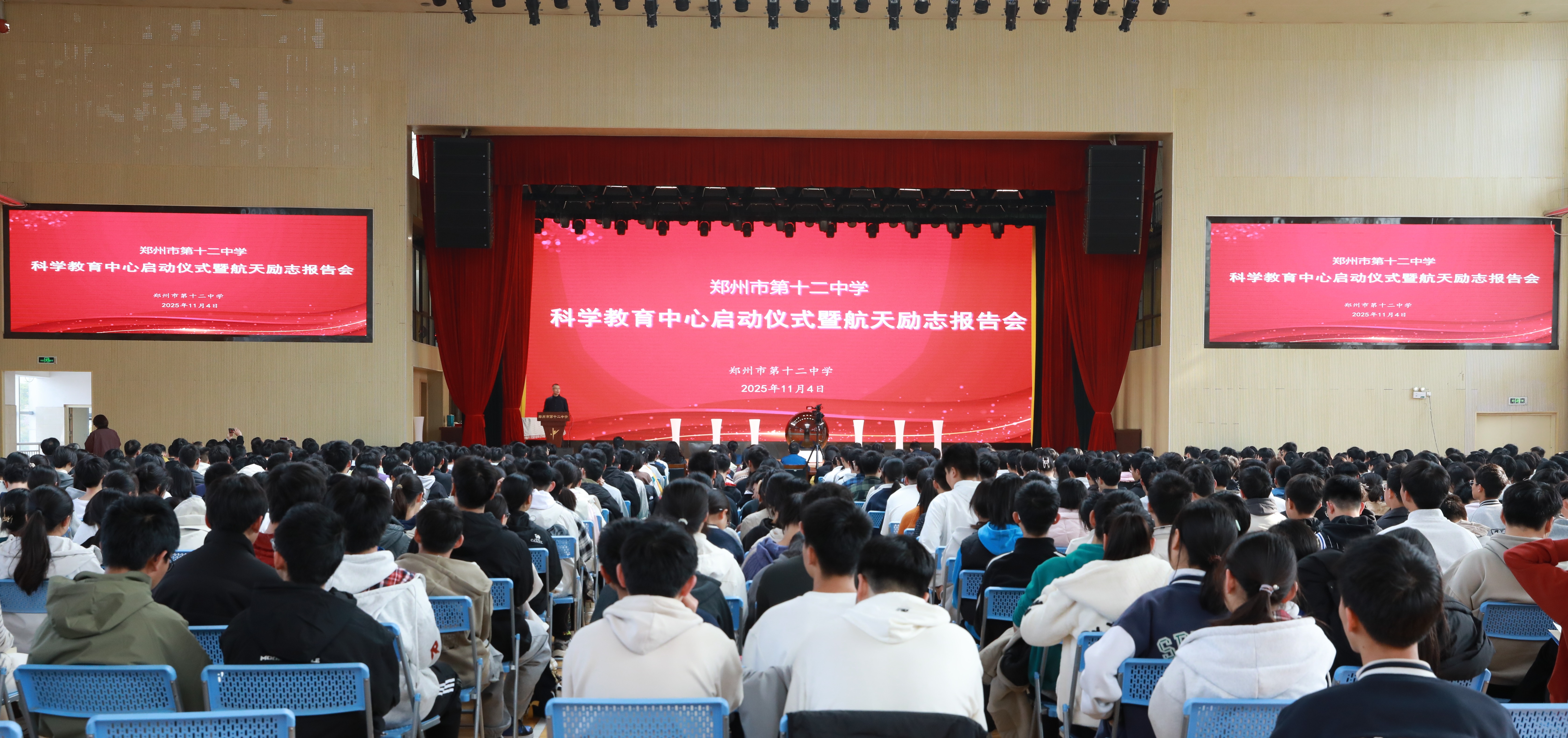 金秋时节,暖意融融。11月4日,郑州市第十二中学体育馆内嘉宾云集、师生齐聚,科学教育中心启动仪式暨航天励志报告会举行。这是学校践行“人文+科技”双轮驱动发展战略的关键一步,更是响应国家科教兴国战略、培育新时代创新人才的重要实践,为校园科学教育发展与学子成长注入全新动能。