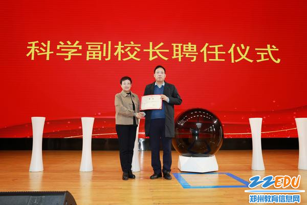 郑州市第十二中学党委书记陈立新为科学副校长颁发聘书