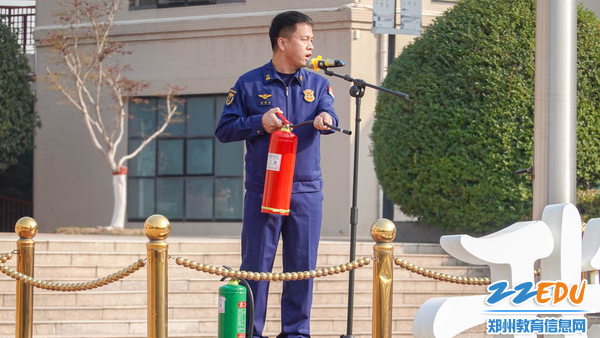 随后,金水区消防救援大队三全路消防救援站消防员张留洋作为特邀嘉宾演讲,他高度肯定了学校此前的逃生演练,点赞师生规范有序的应急反应。他结合两起真实案例,用触目惊心的后果敲响安全警钟,详细讲解火灾逃生时捂口鼻的正确姿势、撤离注意事项及灭火器使用方法,叮嘱大家牢记“预防为先、沉着应对”,不玩火、不违规用电,遇火情及时报警,让消防知识真正落到实处。