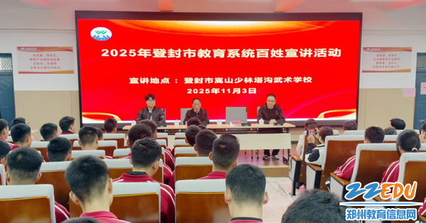 从7月16日登封市少林小龙武术学校首场宣讲活动的启幕,到11月陆续走进登封市嵩山少林塔沟武术学校、登封市少林鹅坡武术学校、登封市少林延鲁武术学校、登封市直属第七初级中学等分会场的开展宣讲,覆盖20所武术学校及登封市公办中小学、幼儿园,1800余名师生、武术学校教练参与其中。内容涵盖“四史”宣传教育、主流价值观弘扬、公共卫生科普、健康教育推广、文明素养提升等领域。每场宣讲都紧扣时代脉搏、贴合师生需求,让思想引领有深度、道德滋养有温度、实践赋能有力度。
