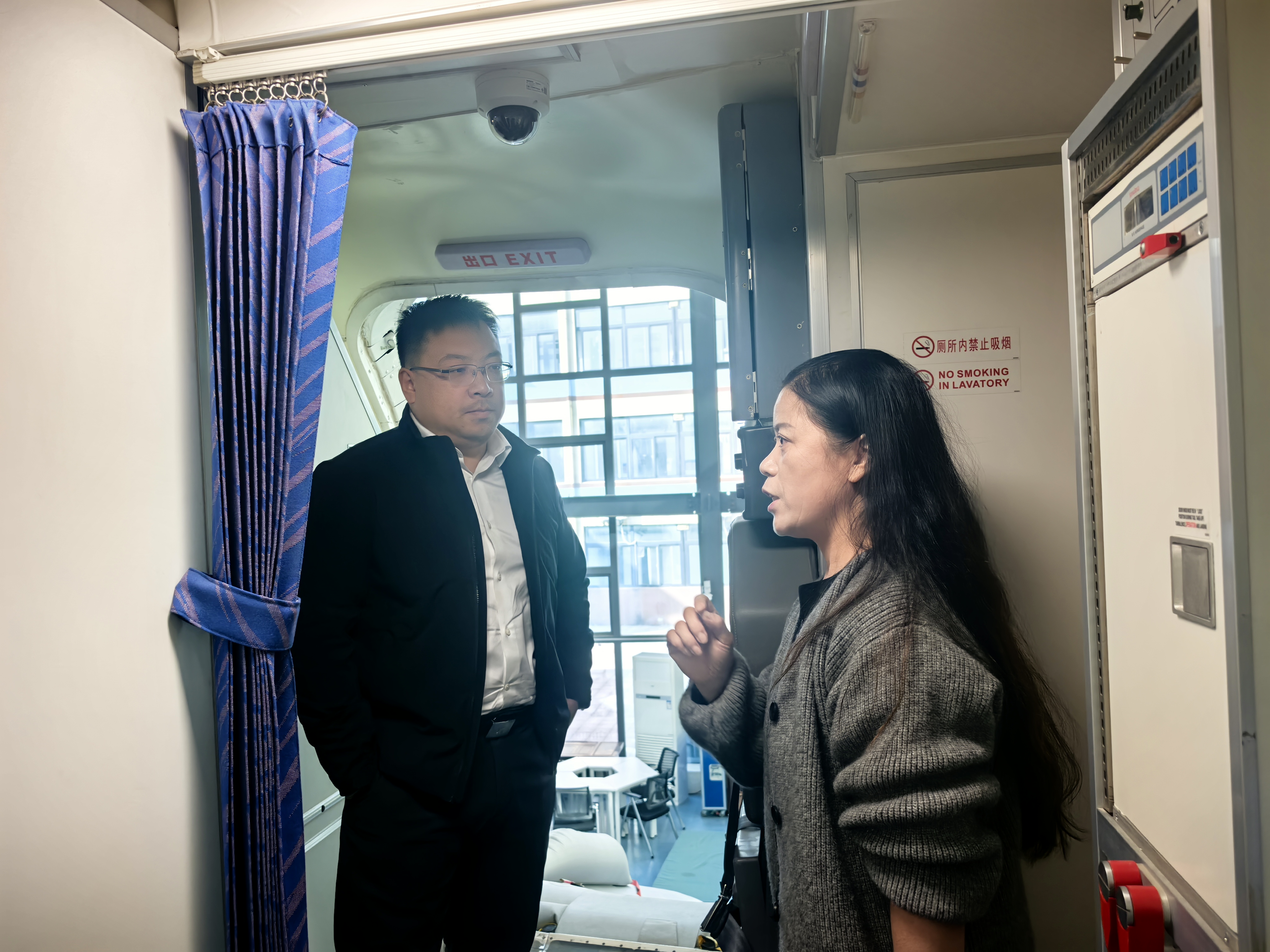 考察团参观郑州市科技工业学校航空服务专业实训室(客机模拟舱)