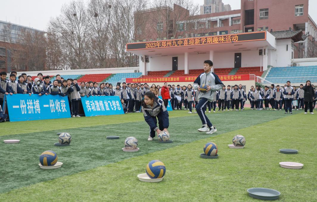 在开学适应周期间,郑州九中以“运动”为核心,设计拔河、“巨蛋排球”“同心鼓”“足排大战”等趣味项目,师生同台竞技、携手互动,不仅缓解了开学焦虑,更传递了团结协作的体育精神,活动参与率高达100%。近三年来,全校学生参与各类课外体育活动累计超7.5万人次,体育已成为校园生活的必备元素。