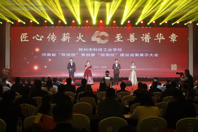 整场展演气势恢宏、舞台精美、节目丰富、亮点频出,师生主持与智能机器人主持配合默契,现场演出与实训基地远程连线交相辉映,共同演绎出一场融科技、艺术与职业教育于一体的视听盛宴。活动不仅生动呈现了郑州市科技工业学校四十年来扎根郑州,在党建思政、人才培养、产教融合、文化传承与服务社会等方面取得的显著成就,更展现了学校全体师生凝心聚力、奋力创建河南省“双优校”的昂扬姿态。