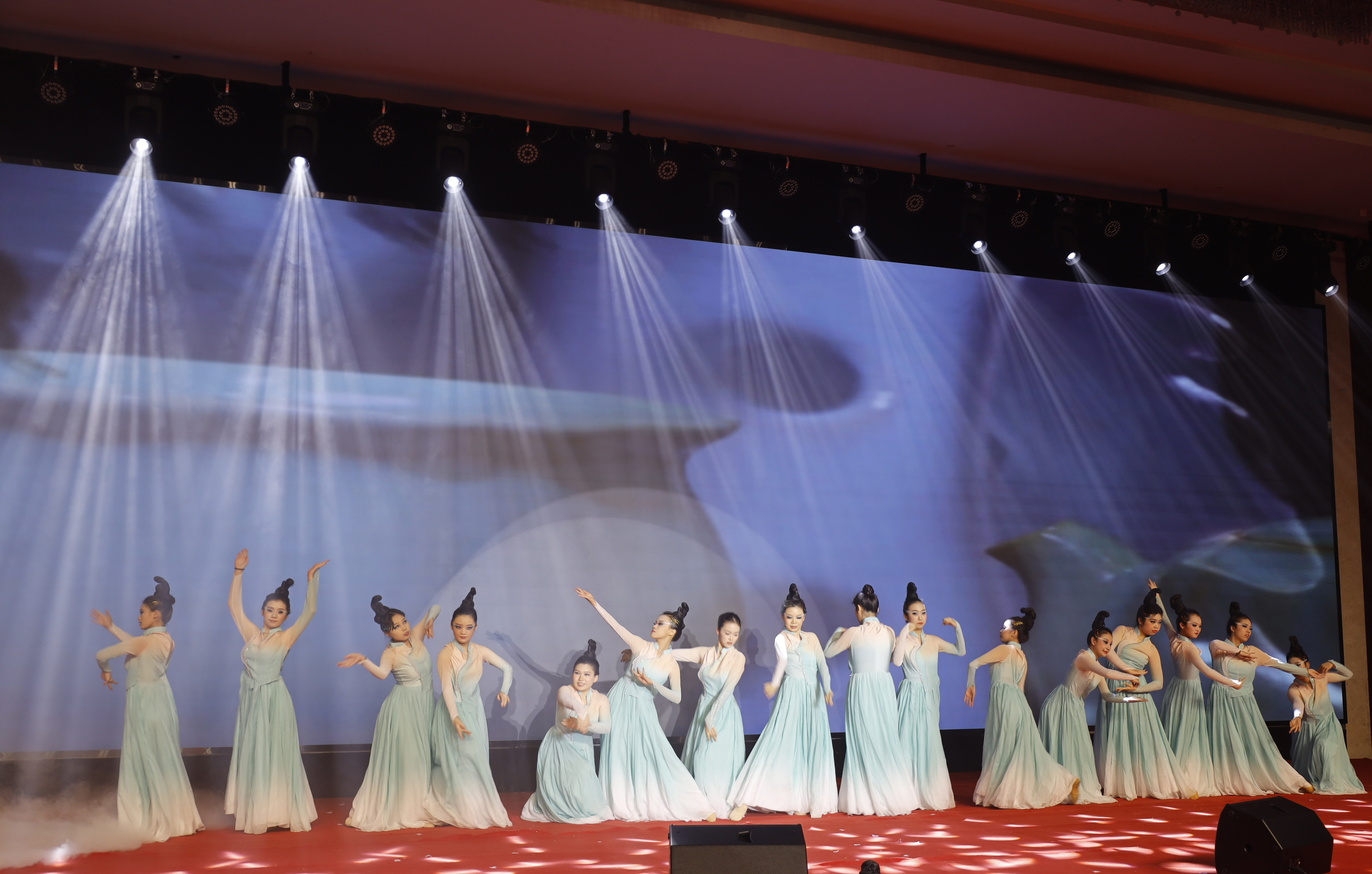 “同心·致远”篇章首先进行校企合作优秀企业授牌仪式,表彰一批在产教融合、协同育人方面做出突出贡献的合作单位;在优秀校友访谈环节,张莹莹、邢丽芬等校友分享了从母校起步、在企业成长的经历,表达了对母校培育的深深感激;企业实践案例展示节目《汝瓷赋》,以古典舞的翩跹舞姿生动演绎了汝瓷“雨过天青”的釉色神韵与“匠造天成”的工艺哲学,将千年非遗的魅力与职业教育的美育成果展现得淋漓尽致;古典诗词合唱《小雅·鹿鸣》融合国风雅韵与时代新声,彰显学校在推动中华优秀传统文化创造性转化方面的育人成效。