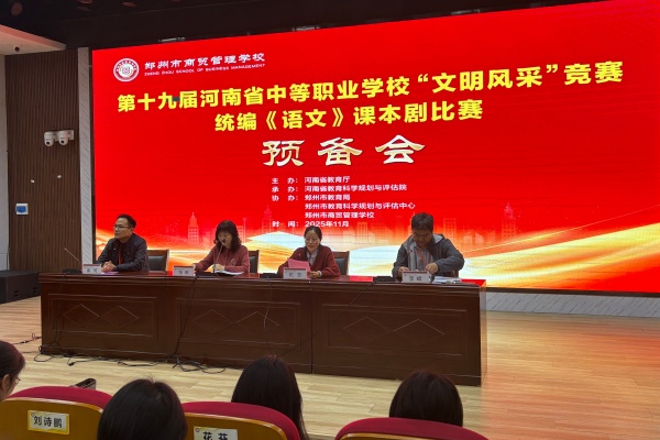 2025年11月14日,由河南省教育厅主办,河南省教育科学规划与评估院承办的第十九届河南省中等职业学校“文明风采”竞赛统编《语文》课本剧比赛在郑州市商贸管理学校举行。来自省内各中职学校的69支参赛队,其中43支为报送组,26支队伍为抽取组,带来精彩的展示。