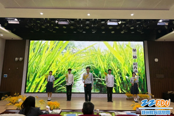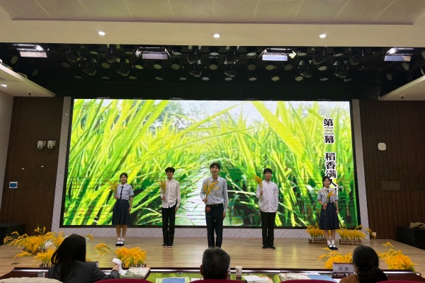 比赛现场,同学们将语文课本中的经典篇目搬上舞台,通过精湛的表演、富有创意的编排和生动的台词,让文字“活”了起来。课本剧《县委书记的榜样焦裕禄》演绎出焦裕禄心系群众、无私奉献的精神,让观众感受到县委书记的榜样力量;《荷花淀》里水乡儿女保家卫国的动人故事,则展现了平凡人在战火纷飞年代的家国情怀;《喜看稻菽千重浪》中,同学们通过“禾下乘凉梦”“艰苦攻关”“稻香满人间”三个场景,再现了袁隆平院士躬耕田野、矢志不渝的科研历程。参赛选手们用真挚的情感、细腻的动作和富有感染力的语言,将一个个经典人物塑造得栩栩如生,将一幕幕课本场景呈现得淋漓尽致。