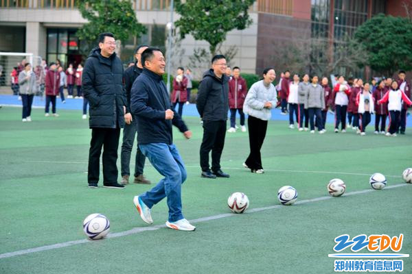随后,学校领导集体移步绿茵场,为本次球类联合赛开球。随着足球在脚下划出一道道流畅弧线,飞向赛场各处,现场瞬间爆发出雷鸣般的欢呼与掌声。这一脚开球,不仅标志着郑州市实验高级中学球类联合赛正式启动,更承载着学校对学子们“在运动中强健体魄,在竞争中学会成长”的殷切期望。