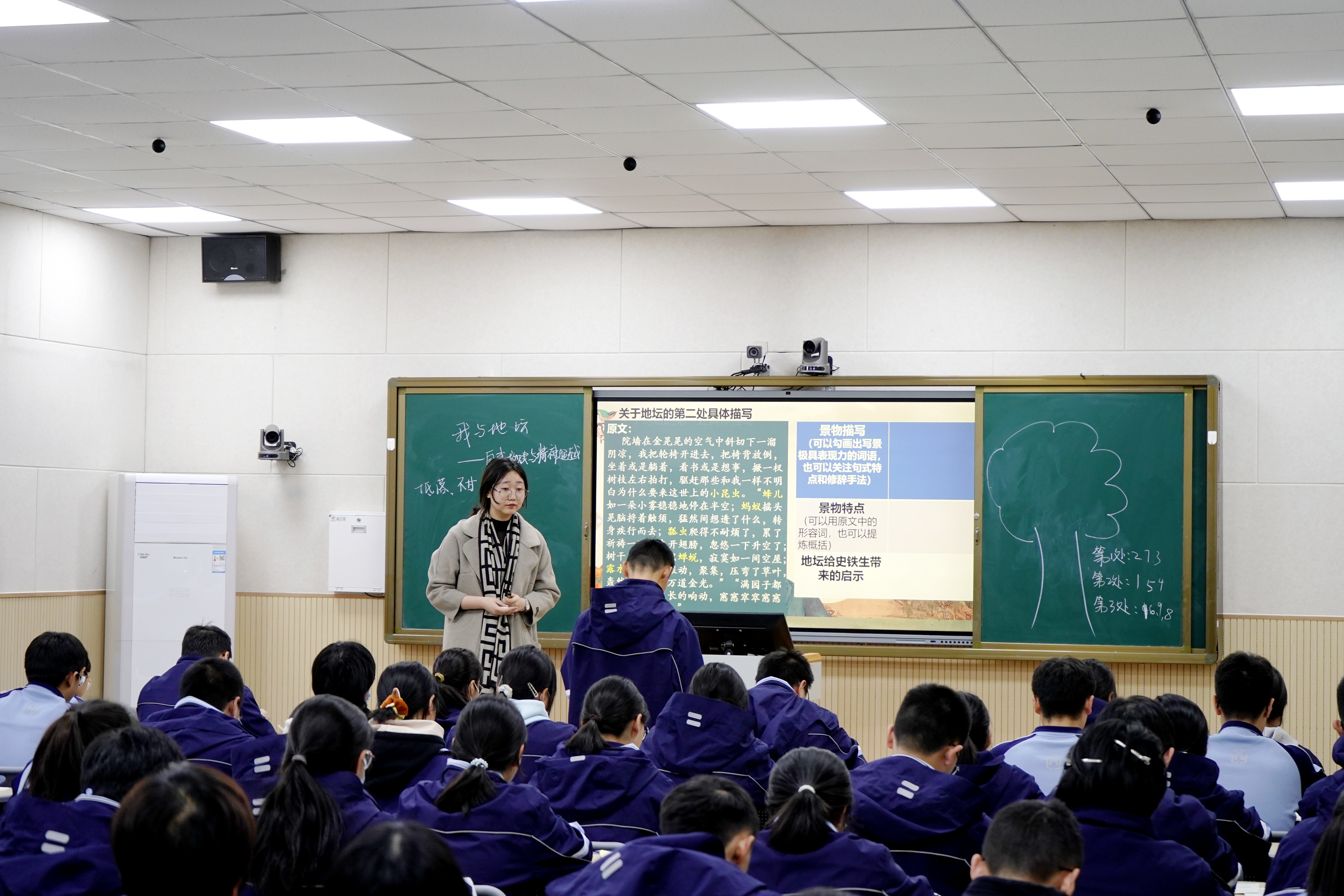 语文课堂上,郑州市第五高级中学两位青年教师以独特的教学视角,让经典文本焕发新生。智欣欣在《解意象之语 拾诗心之韵》一课上,化身“诗意引路人”,带领学生走进《春江花月夜》《将进酒》等经典篇章,通过“联语境-析特征-定情感”的三步解读法,使抽象的诗词意象变得可感可析;邓鑫老师则以富有感染力的语言讲授《我与地坛》,引导学生赏析地坛景致、领悟生命哲思,在品味史铁生苦难中救赎的坚韧品格时,鼓励学生结合自身经历思考生命价值,让文章的人文温度直抵心灵。
