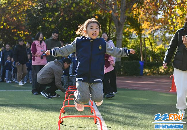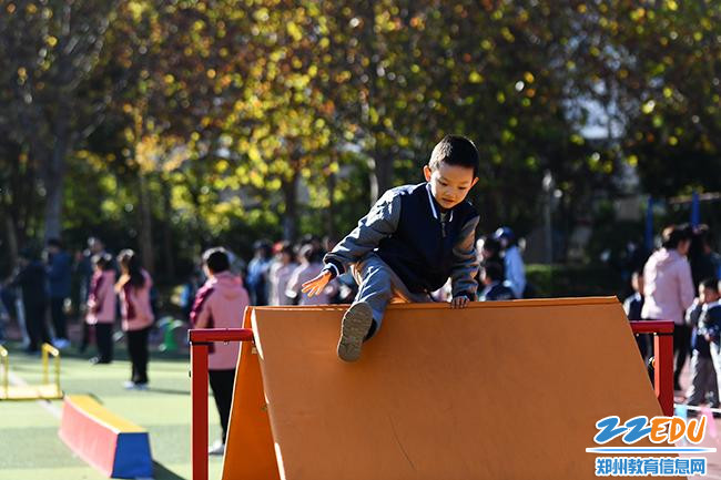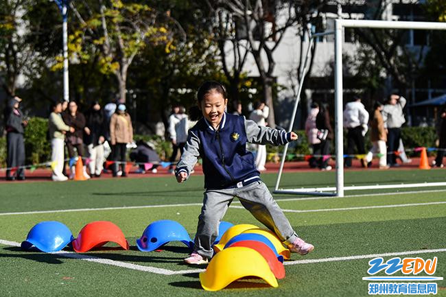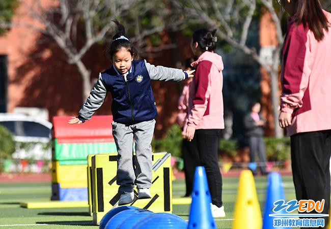 郑东新区宇华幼儿园大班学生通过体能大循环的锻炼,完成从“我不敢”到“我能行”的蜕变。