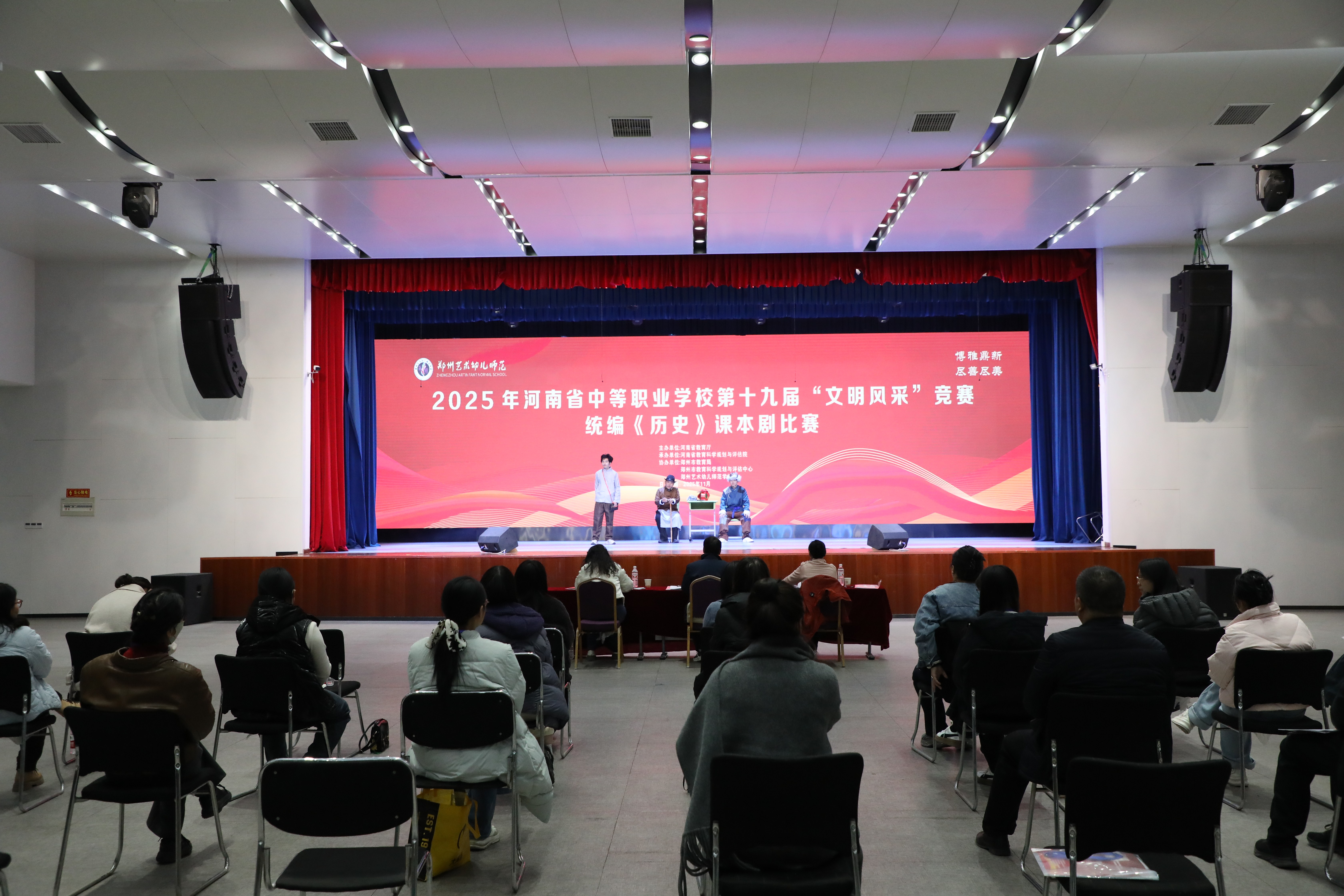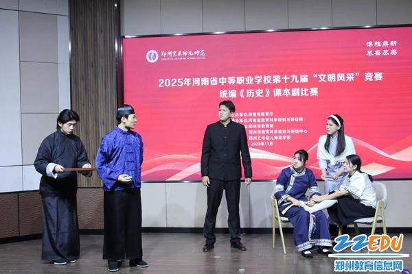 以舞台演绎历史,用青春传承文明,2025年11月20日至21日,第十九届河南省中等职业学校“文明风采”竞赛统编《历史》课本剧比赛在郑州艺术幼儿师范学校举办。本次大赛汇聚了来自全省各地的精英学子,为大家呈现了一场精彩纷呈的历史文化盛宴。