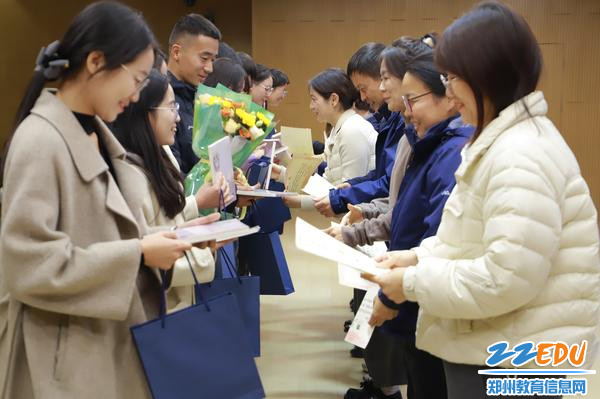 仪式伊始,学校纪委书记李勇杰宣读了学校《2025年青蓝工程聘任新进青年教师指导教师的决定》,清晰的结对安排,让现场的期待氛围愈发浓厚。随后,学校党委书记朱红军走上台,为指导教师依次颁发聘书:高艳娟、张彤等19位经验丰富的教师接过聘书,他们的身影里,是多年深耕教学一线的沉淀;聘书的分量,是学校的信任,更是青年教师成长的“引航灯”。