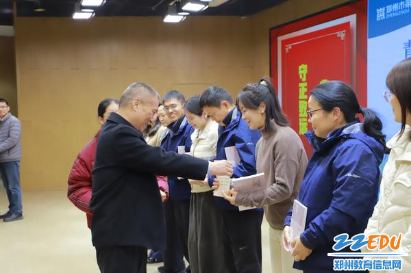 郑州市第十六高级中学党委书记朱红军为指导教师颁发聘书